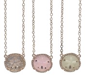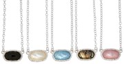 Oval Facet Pendant on Silver Chain Necklace Assorted