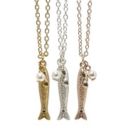 Rose Gold / silver plated / gold skinny fish with pearl necklace