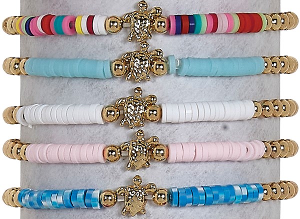 Howlite Stone Turtle & Beads Adj Slide Knot Bracelet (B) Assorted W/Tube & Base