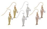 Rose Gold / Silver Plated / Gold Plated Fish with Pearl Pendant Earrings